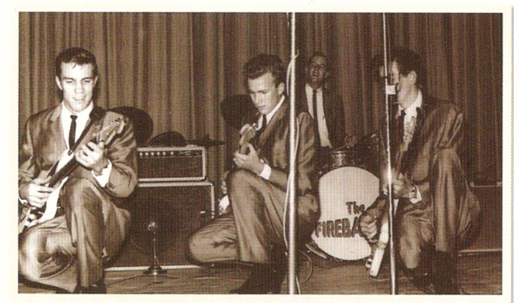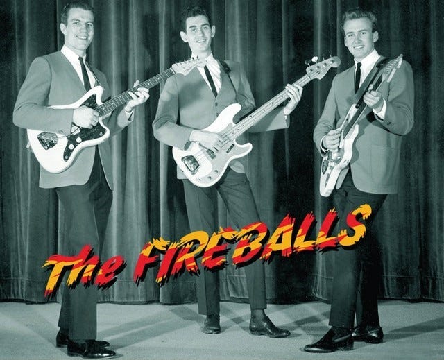 His parents obliged and Tomsco, ax in hand, was on his way. In high school, he formed the Fireballs, who settled on their name at their first appearance, a 1958 PTA Talent Show where they covered current Jerry Lee Lewis hit “Great Balls of Fire.” Not long after, they lucked into their first session at the famed Clovis, New Mexico, studio of Buddy Holly producer Norman Petty via a brief telephone audition. They were launching singles into Billboard’s Top 40 from the get-go, and later, with singer Jimmy Gilmer, scored a number one smash with 1963’s “Sugar Shack.”